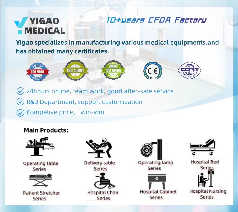 Vi är en professionell fabrik med fokus på forskning och utveckling, produktion, försäljning och service av medicinsk utrustning. Våra huvudprodukter inkluderar operationsbord, förlossningssängar, sjukhussängar, etc., och vi är engagerade i att möta de olika behoven hos moderna medicinska institutioner.