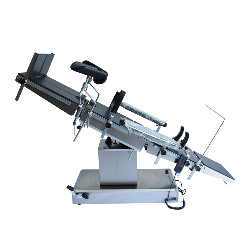 3. Lyftning och sänkning av arbetsbordet, den främre och bakre lutningen, den vänstra och högra lutningen och rotationen av den bakre panelen uppnås alla genom elektrisk tryckstångsöverföring.