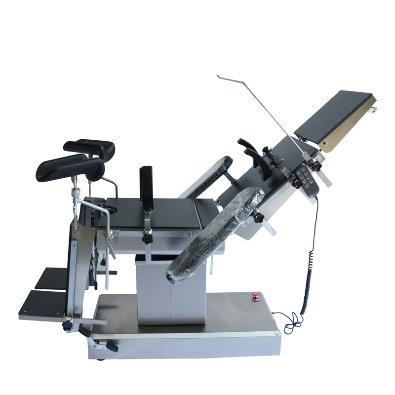 3. Funktionerna för bordslyftning, bakåt- och framåtlutning, vänster- och högerlutning och translation styrs alla av en enda elektrisk tryckstång; Upp- och nedfällningen av ryggbrädan drivs och styrs av en dubbel elektrisk stötstång.